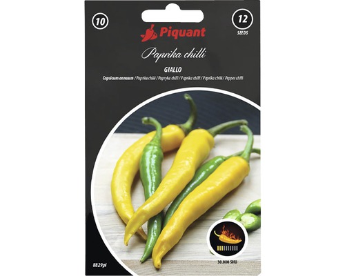 Raná odrůda žlutých nebo zelených pálivých paprik Giallo s až 15cm dlouhými plody. Je vhodná pro pěstování s oporou. V balení po 15 kusech. Při manipulaci s plody doporučujeme využití ochranných pomůcek! Chraňte před zvířaty a dětmi. Nižší pálivost cca 30.000 SHU. Chraňte před zvířaty a dětmi.
