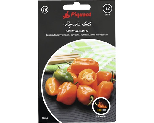 Sytě oranžové plody s vyšší pálivostí až 450.000 SHU. Poloraná odrůda. 12 semen.